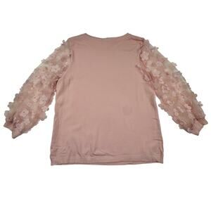 Sioni Blush Pink Lightweight Mesh Sleeve Flower Applique Sweater Women's Size L