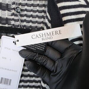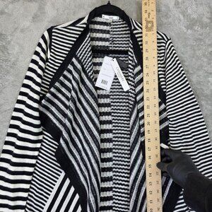 Sioni Cardigan Womens Large Black White Cashmere Blend Open Front Striped Draped