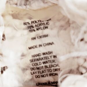 Fabric: 80% Polyester, 10% Acrylic, 10% Nylon