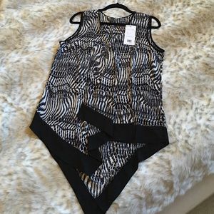 Beautiful flowing sleeveless, v-neck, polyester, machine wash, medium is TTS w/a little extra room w/34DD bust. NWT, never worn. Smoke-free home. Bundle 2+ items and save!