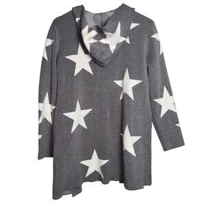 Sioni Gray Star Print Open Front Hooded Cardigan | Size Medium