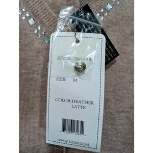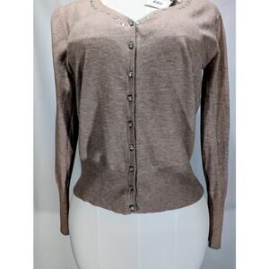 Sioni Heather Latte Wool Blend Beaded Button Cardigan Sweater Size M NWT