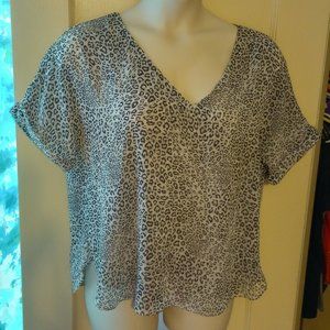 Sioni - size XL black and white leopard print, V neck, short sleeve blouse