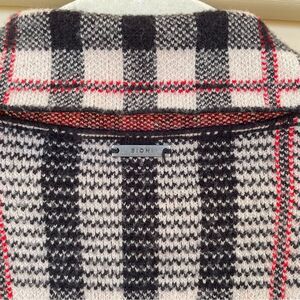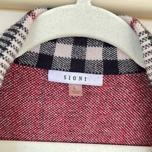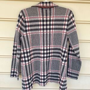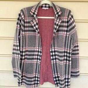 Sioni Luxury Plaid Open Front Collared Cardigan Black Red Layering Piece Large