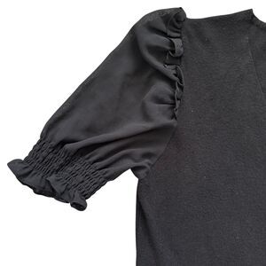 Sioni Milano Black V-Neck Top with Sheer Short Sleeves medium