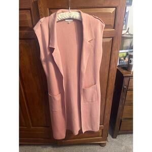 Sioni Open Long Knit Vest Size M Pink/ Blush With Pockets *Designer
