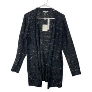 Sioni Sequin Cardigan Women’s Size L Long Sleeve Open Front Black Sparkle NWT