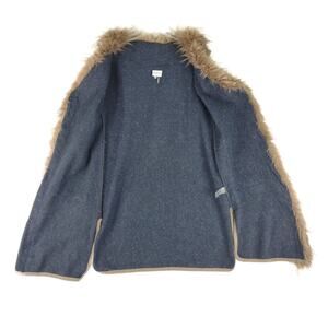 Sioni Studio Women's S/M Faux Fur Trim Long Sweater Vest Open Coat +Pockets