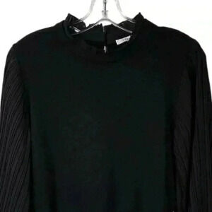 Sioni Women's Black Sheer Pleated Sleeve Mock Neck Blouse Size M