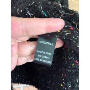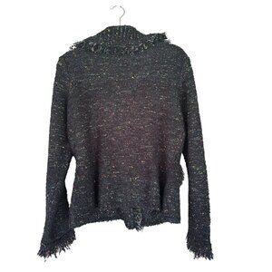 Sioni Womens Black Speckled Tweed Button-Up Cardigan Jacket With Fringe Details
