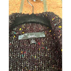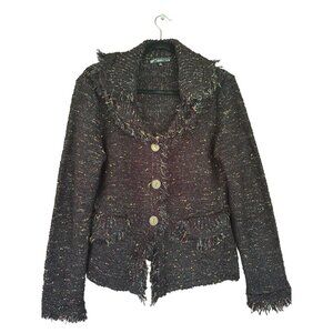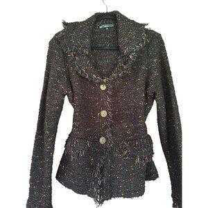 Sioni Womens Black Speckled Tweed Button-Up Cardigan Jacket With Fringe Details
