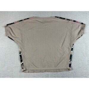 Sioni Women's Floral Palm Satin Print~ Short Sleeve Stretch Sweater Size Small