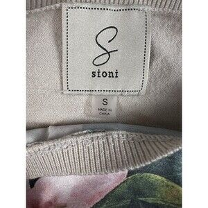 Sioni Women's Floral Palm Satin Print~ Short Sleeve Stretch Sweater Size Small *