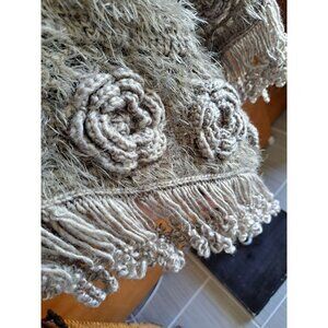 Sioni Womens Fuzzy Knit Poncho Wool Blend Floral Tan Fringe Details Size L/XL