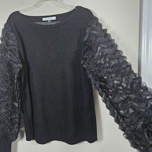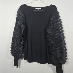 Sioni Women's Mixed Media Boat Neck Sheer Pullover Black Sweater Size Medium