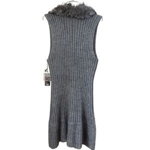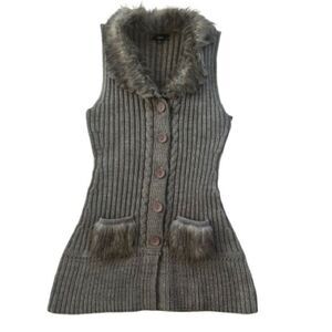 Sioni Wool Blend Faux Fur Long Sleeveless Cardigan Button Vest Size XL