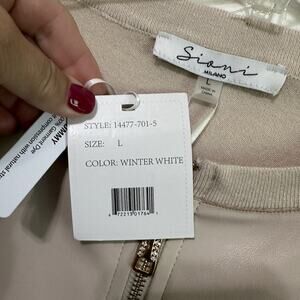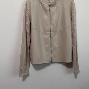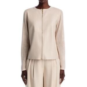 Sioni Zip Front Mixed Media Jacket L Faux Leather Winter White Knit Designer NEW