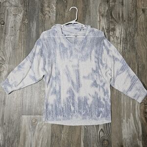 Sioni light knit hoodie size large see pics for verification of size used no holes or stains however has snag as shown in pics measurements approximately flat lay pit to pit 21 length 26 sleeve 15