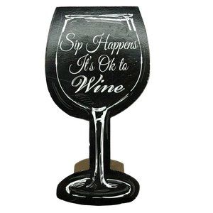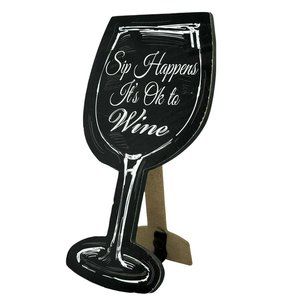 Sip Happens It's Okay to Wine Free Standing Sign Wine Glass Shape Decor 6.5"