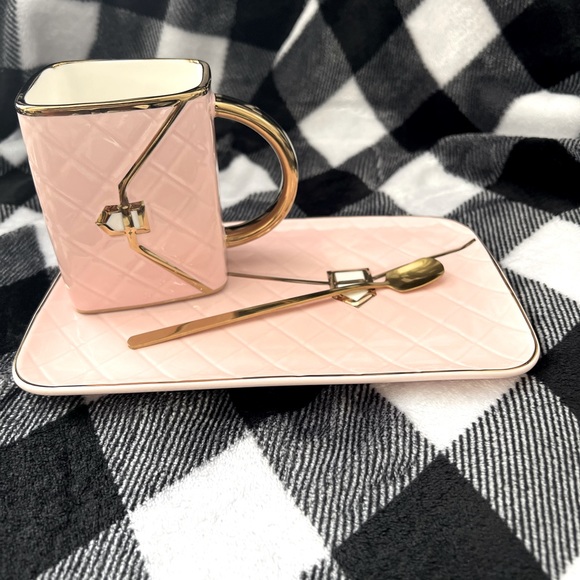 Posh ceramic tea cup and serving saucer set is cute for collectors and those just wanting a fancy sip!