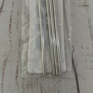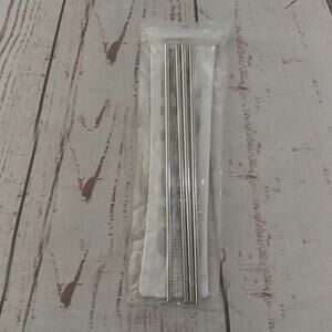Sip Up set of four silver colored reusable straws with carry case and bristled cleaning brush. Perfect for travel or daily use on the go. The eco friendly set helps reduce plastic waste. Straws are a firm metallic material to help prevent lose of shape after use.