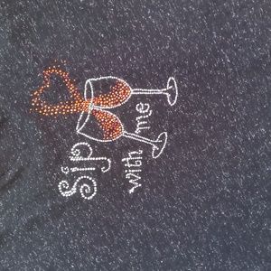 Black metallic long sleeve tshirt. Front graphic is silver and red bling rhinstone. Great for that girls trip!