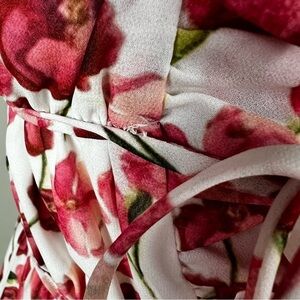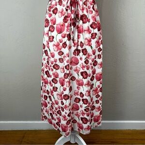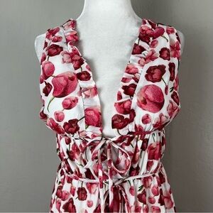 Samantha Sipos Strawberry Floral Chiffon Tie Front Pink White Midi Dress Size Small