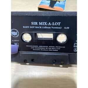 The product is an original 1992 cassette tape single by artist Sir Mix A Lot, titled "Baby Got Back." This release is under the American Recordings label and falls under the Rap & Hip-Hop genre. The cassette comes in a cardboard sleeve and is in good condition, making it a collectible piece for any music enthusiast from the 1990s era. With a mixed style and English language lyrics, this cassette tape is a nostalgic piece of music history that would make a great addition to any music collection.