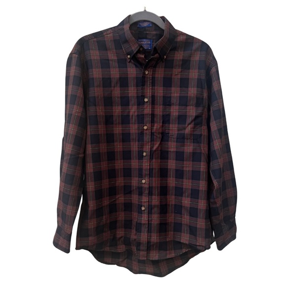 Sir Pendleton 100% Virgin Wool Long Sleeve Plaid Shirt, Medium
