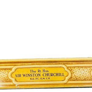 This collectible tin box features a portrait of Sir Winston Churchill, highlighting intricate gold detailing. Ideal for collectors and history enthusiasts.