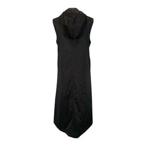 features: Polyester/nylon high quality made fabric in black. Lined. Hooded. Sleeveless. Midi/maxi length (depending on height). 1/2 zip front detail. Pockets. Pull over.