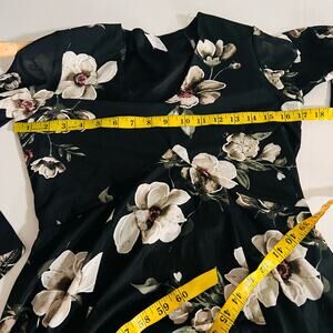 Siren Lily Floral Bell Sleeve Fit And Flare Dress Size S Small Black Cream