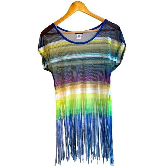 Siren Lily multicolored fringe detailed top with stripes; size Medium; Bust roughly 16 inches; length to the end of fringe from shoulder is approximately 32”