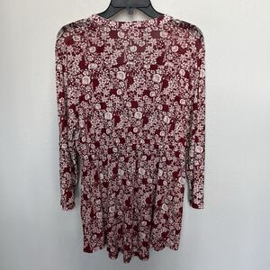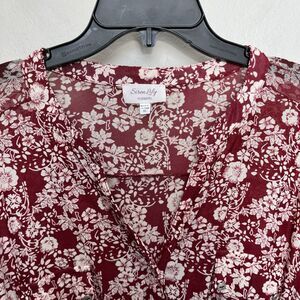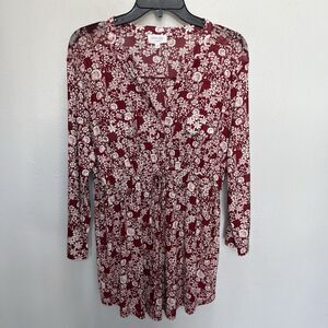 Siren Lily Maternity | Burgundy Red Floral Tunic Top XL Semi Sheer Tie Waist