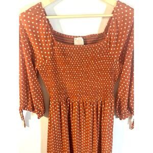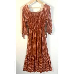 Siren Lily Orange Rust Smocked Coquette Tiered Maxi Vintage 90's Dress Boho Sz L