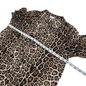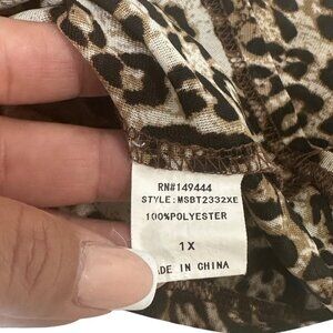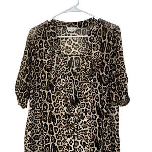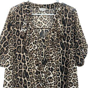 Siren Lily Strech Mesh Leopard Print Ruffled Top Blouse Women 1X Ruffle V neck