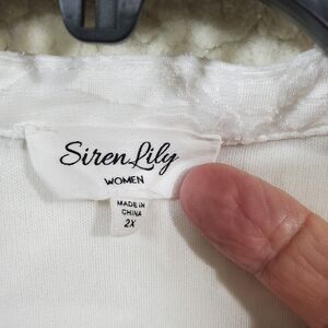 The Siren Lily White Floral Lined Sheer Lace Blouse in size 2X is a feminine and elegant top perfect for various occasions such as parties, casual outings, and workwear. Made from lightweight and breathable lace fabric with a floral pattern, this blouse features a V-neckline, 3/4 sleeves, and a relaxed fit. The sheer detailing adds a touch of sophistication to this white blouse, making it a versatile and stylish addition to any woman's wardrobe.