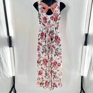 Siren Lily White/Pink/Green Sleeveless Longer Flowing Maternity Sundress-Size L
