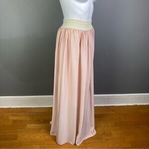 Siren Summer pink satin skirt medium Tahari NWT crochet maxi princess Grecian