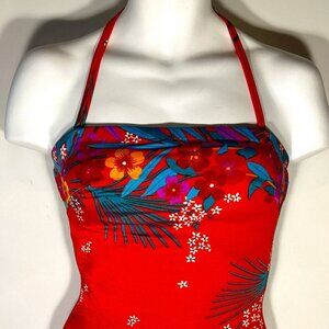 Sirena Vintage SZ 14 Red Tropical Print Tummy Control Swimsuit 80's Beach Swim
