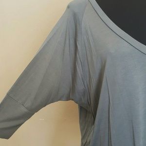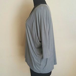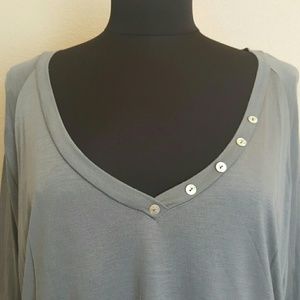 Loose causal top grey with white buttons v-neck mid sleeve