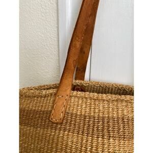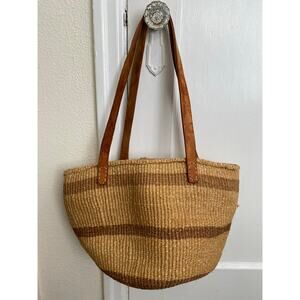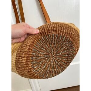 Sisal Woven Leather Strap Market Basket Grocery Shopping Tote Bag