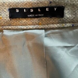 Sisley 100% Wool light blue skirt. Zipper and button closure, back slit and lined. Fabric contains no stretch