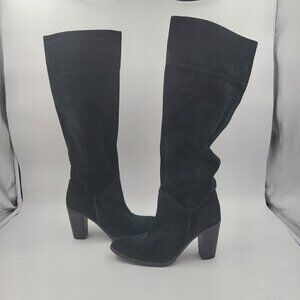 Sisley Black Suede Leather Knee-High Pull On Heeled Boots EU 39/ 8.5