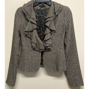 Sisley Brown Houndstooth Cropped Blazer Size2/36 Ruffled Vintage