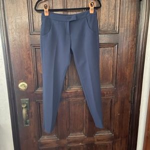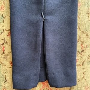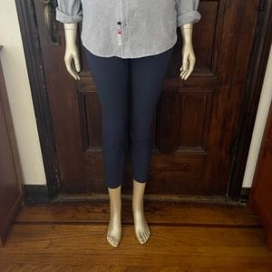 Lovely Sisley dark blue capri pants. It has two hip pockets, with hook, button and zipper closure. There are zippered vents on the bottom of each leg. The material is slightly stretchy for supreme comfort and flexibility. Worn just one time.