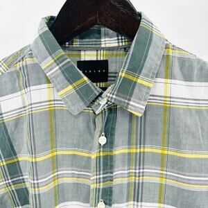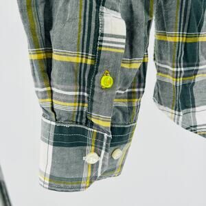 Sisley Green Gray Yellow Preppy Slim Fit Plaid Long Sleeve Shirt