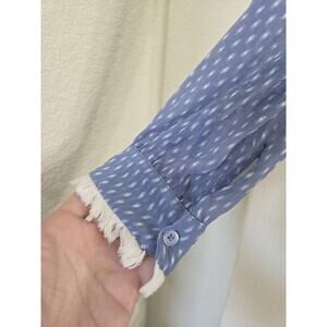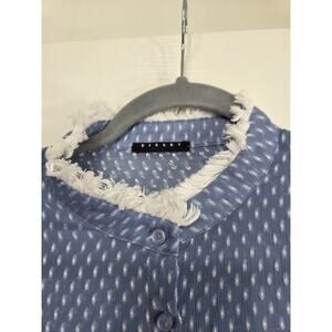 Sisley Italy Sheer Blue White Romantic Fringed Buttondown Blouse, Size Large