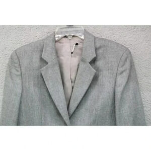This is a Sisley-Made in Italy- Women's Skirt Suit that is 100% New Wool. The jacket is a size 42 and the skirt is a size 44. The jacket measures: Armpit to armpit-19" and the length is 27". The skirt has a 27.5" Waist and the length is 19". The jacket has a couple of spots on the cuff, but I believe it will come out when dry cleaned. Great suit for business or the office. In good condition.