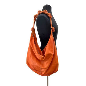 Sissirossi Extra Large Orange Leather Shoulder Bag Gorgeous soft Italian leather bag that shows wear but in the coolest way if you know what I mean. This bag will last a lifetime! Braided handle Overall wear to the bag, pen marks, fading to the leather, interior lining shows some wear. Zipper closure Inside zipper pocket